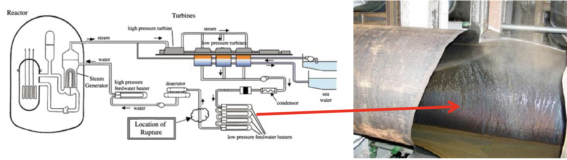 Mihama accident 2004; pipe (left), rupture location (right).