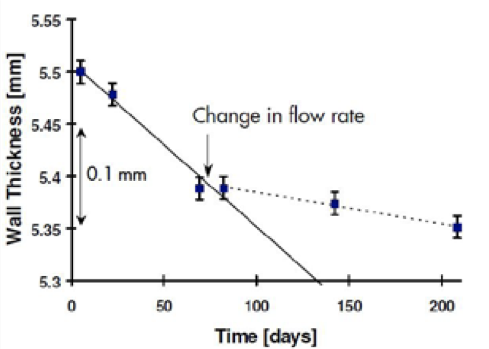 PEC measurements are generally highly repeatable. This makes it well suited for corrosion monitoring purposes. Corrosion rates can be deduced from wall thickness measurements over a time interval at fixed locations.
