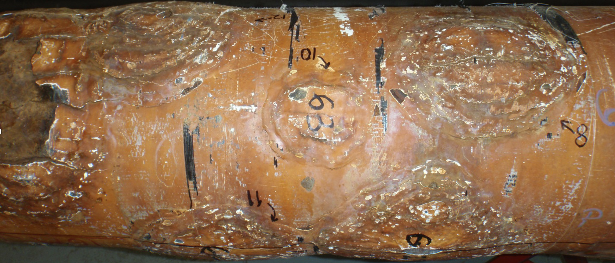 PEC can easily measure through the riser coating and through the Monel protective metal layer detecting corrosion in the carbon steel section and through the marine growth layer.